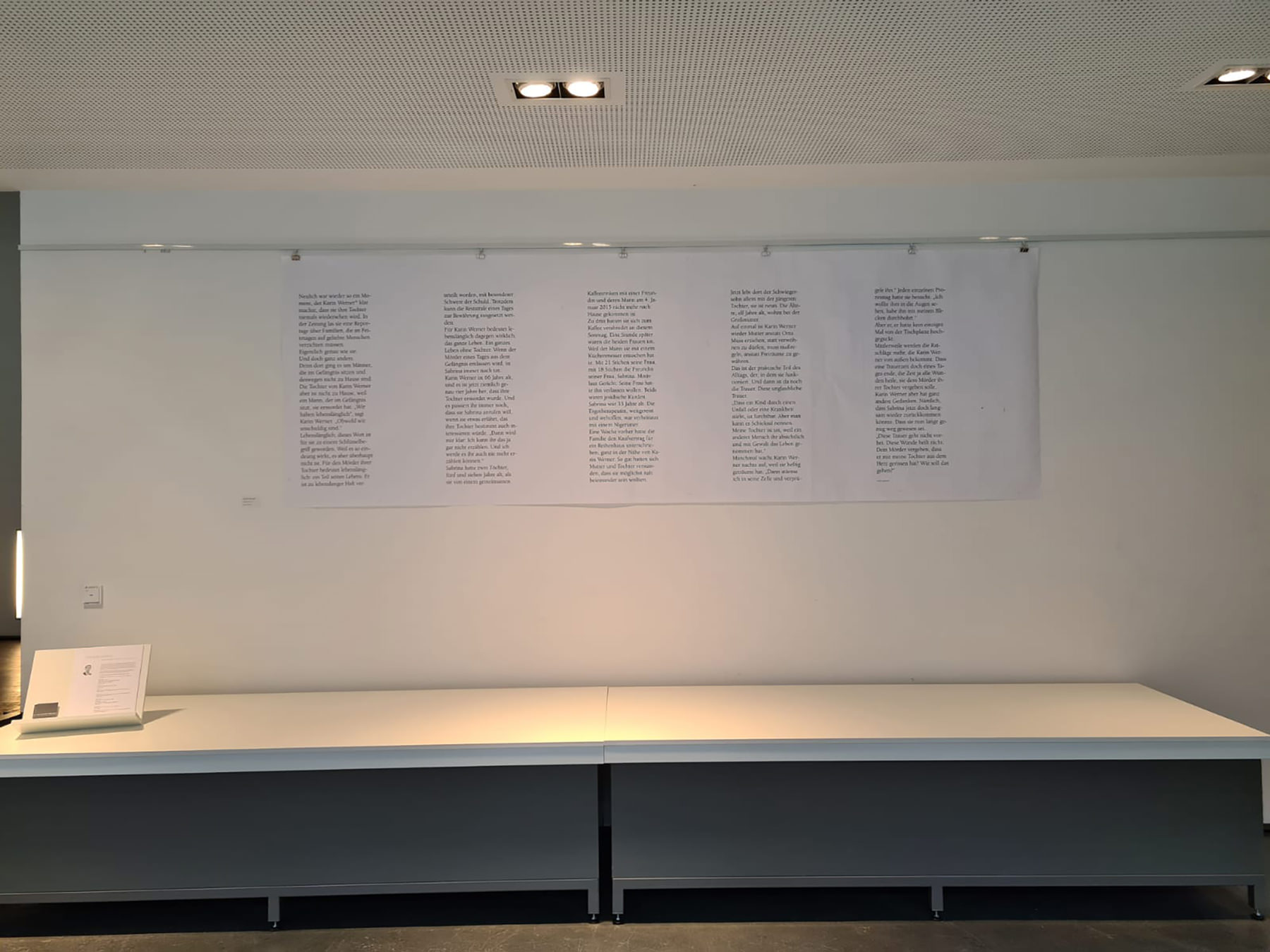 Die Objekte aus ihrer ersten Einzelausstellung „Schriftbilder“ hat Carolin George um weitere ergänzt und 2021 im Museum Lüneburg, Raum M, ausgestellt. Zeitgleich erschien ihr Katalog: „Menschenlesen – Porträts in Wort und Objekt“. Erhältlich ist er in Atelier 11 der KulturBäckerei. Zum Abschluss der Ausstellung las sie im Innenhof des Museums aus dem Katalog und erzählte aus der Entstehung der Werke.
